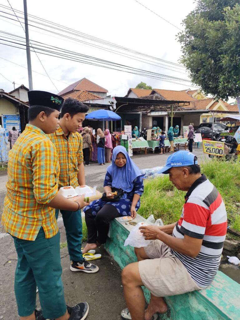 Dalam kegiatan ini, para siswa membuka stand jualan yang menyediakan berbagai produk makanan dan hasil kreativitas mereka. Mereka belajar secara langsung bagaimana menawarkan barang dengan sopan dan percaya diri, melayani pembeli dengan ramah, serta menghitung hasil penjualan dengan teliti. Suasana pasar yang ramai justru menambah semangat mereka untuk berinteraksi dengan masyarakat.