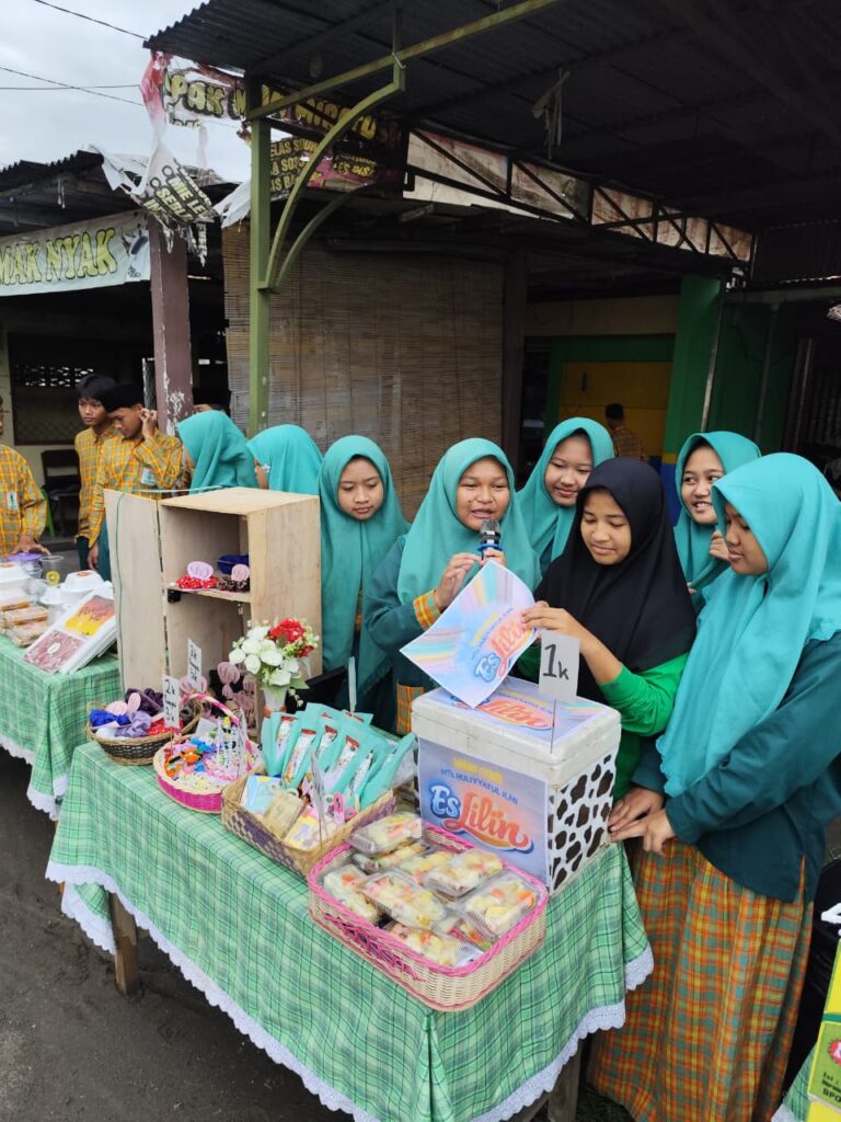 Selain berjualan, siswa juga aktif mempromosikan MTs Huliyatul Ilmi kepada para pengunjung pasar. Mereka memperkenalkan program unggulan sekolah, kegiatan ekstrakurikuler, serta suasana belajar yang nyaman dan berkarakter. Kegiatan ini menjadi ajang pembelajaran nyata tentang kewirausahaan, komunikasi, tanggung jawab, dan kerja sama tim.
